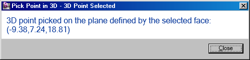 public Result Execute( ExternalCommandData commandData, ref string message, ElementSet elements ) { UIApplication uiapp = commandData.Application; UIDocument uidoc = uiapp.ActiveUIDocument; XYZ point_in_3d; if( PickFaceSetWorkPlaneAndPickPoint( uidoc, out point_in_3d ) ) { TaskDialog.Show( "3D Point Selected", "3D point picked on the plane" + " defined by the selected face: " + Util.PointString( point_in_3d ) ); return Result.Succeeded; } else { message = "3D point selection failed"; return Result.Failed; } }